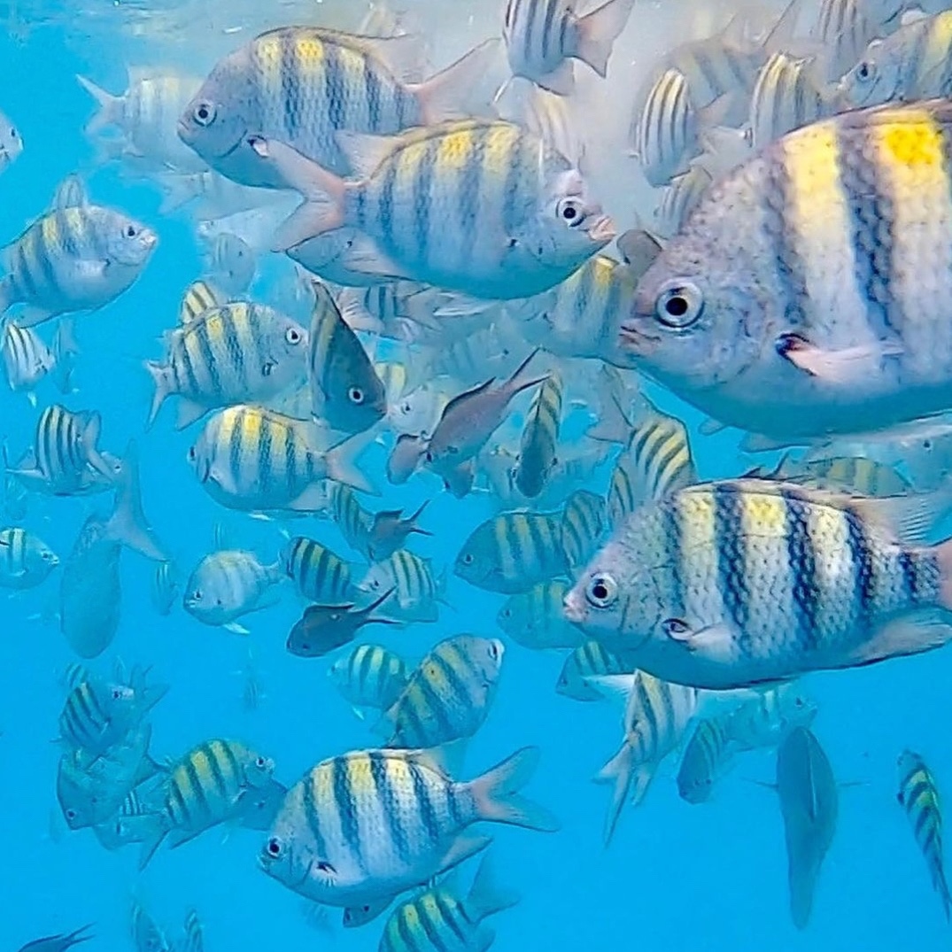 Then we hopped on a bus and over to the docks to join in on a catamaran cruise. We went snorkeling and saw loads of gorgeous fish and stingrays. We got to swim with sea turtles and here in Barbados, we are allowed to touch them. Those of you who know me, know I basically was in heaven. They had to call me back to the boat because I didn’t want to leave. It wasn’t my top bucket list of meeting RuPaul, but it was certainly a second to see and touch sea turtles in their natural habitat. Hubman was being handed birthday cocktails and shots every time he turned around. We were served a delicious lunch on the boat right in front of Rihanna’s house.